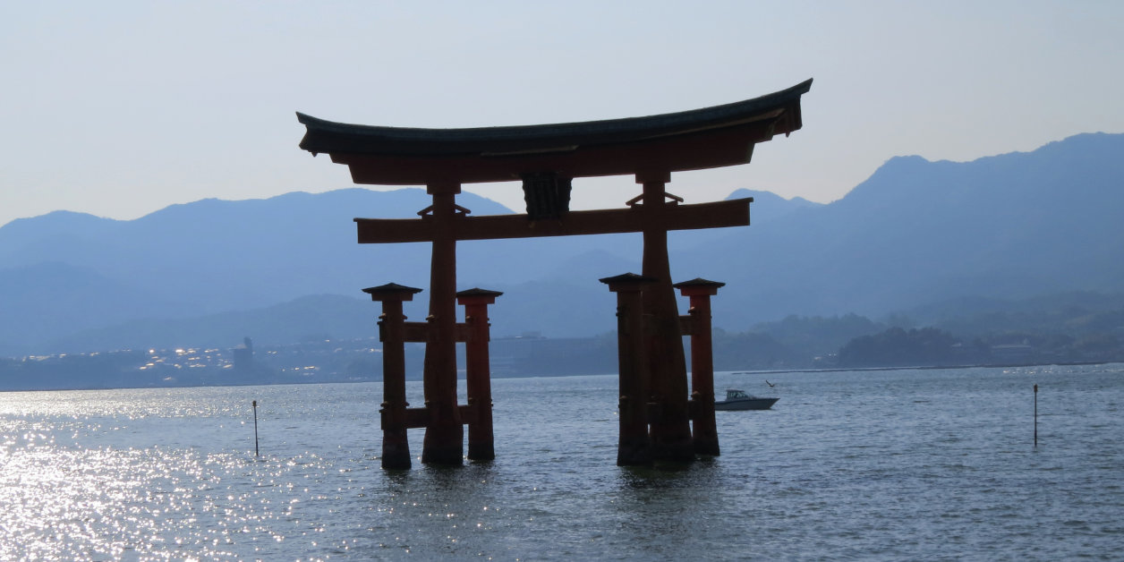 Het eerste wat je ziet, als je met de ferry Miyajima nadert, is een O-torii poort. Men gelooft dat je via zo’n poort het heiligdom bereed. Daarom voer men vroeger altijd met de boot onder deze poort door. En daarom vind je bij alle tempels in Japan dit soort poorten.