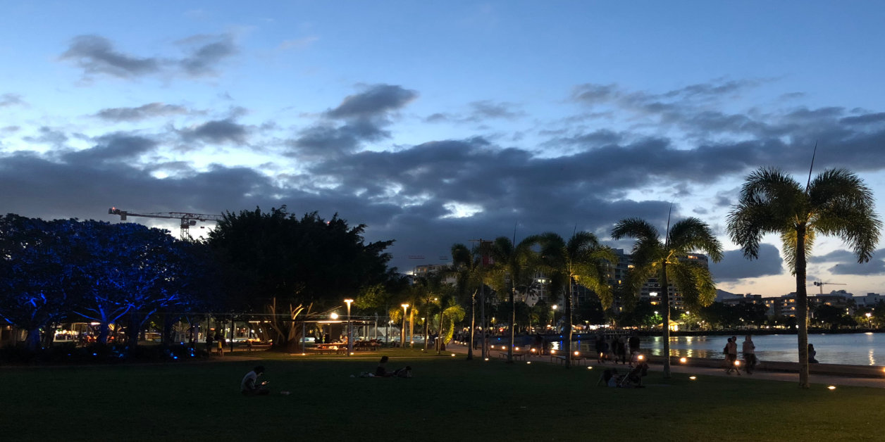 De beesten hangen in de bomen bij de esplanade. In 2016 heeft de gemeente een poging gedaan om ze weg te krijgen. Waarschijnlijk omdat ze ziektes overbrengen en stinken (ga maar eens vijf minuten onder zo’n boom staan). Maar de verhuispoging mislukte. De vleerhonden hebben het teveel naar hun zin in Cairns.
