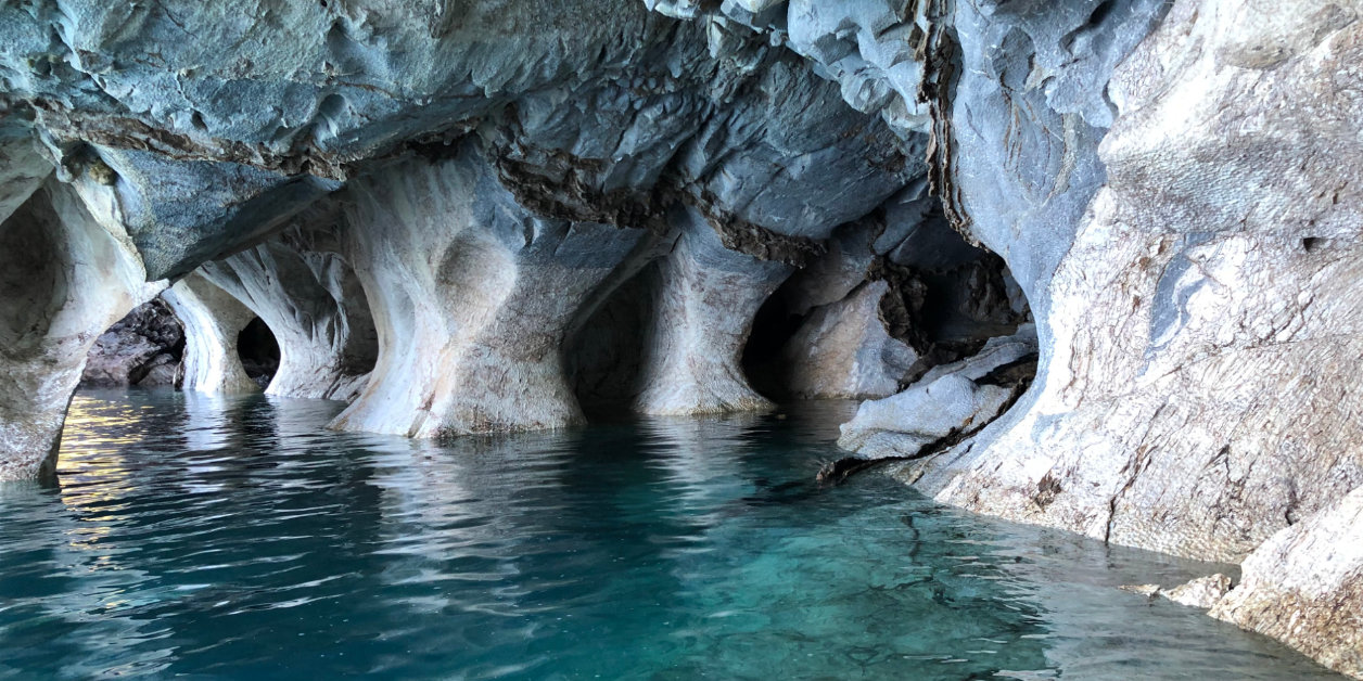 Puerto Rio Tranquilo is een gehucht langs de Carretera Austral in Chili. Je vindt er de Marble Caves. Grotten met een marmerachtige structuur omringd door helderblauw water.