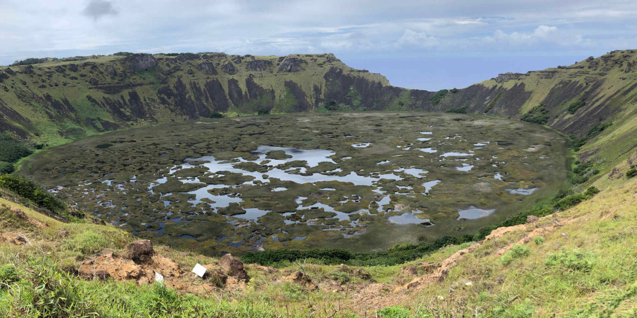 Bij deze vulkaan werden alle Moai gemaakt. Lees meer over Rano Raraku in mijn blog over de Moai van Paaseiland.
